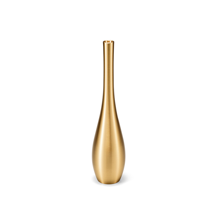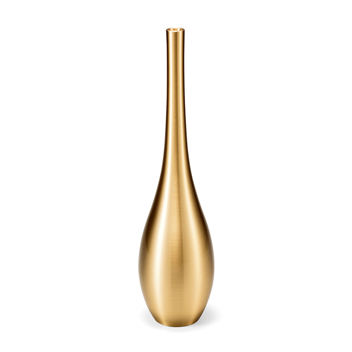 將素材之美發揮至極致的優雅黃銅花瓶。自古以來,曾呂利花瓶就是妝點茶席時常見的花器。為了淋漓盡致展現出素材原始之美,每一個花瓶都經過能作職人手工拋光。曾呂利花瓶簡潔流暢的造型,無論擺在日式風格或西式風格的居家空間都十分和諧。