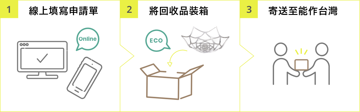 - 歡迎您參與本項回收再生計畫,每次參與可獲取【商品定價*10%】的會員積分回饋,若為停產停售或由日本購回商品可事先聯繫能作台灣LINE官方帳號確認回饋的點數。